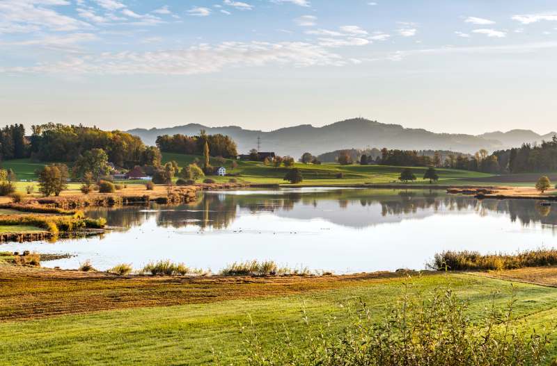 Erkunden Sie bei einer Wanderung um den Lützelsee die malerische Landschaft und vielfältige Tierwelt rund um Grüningen. Geniessen Sie einen erholsamen Spaziergang inmitten von Natur und Weite.
